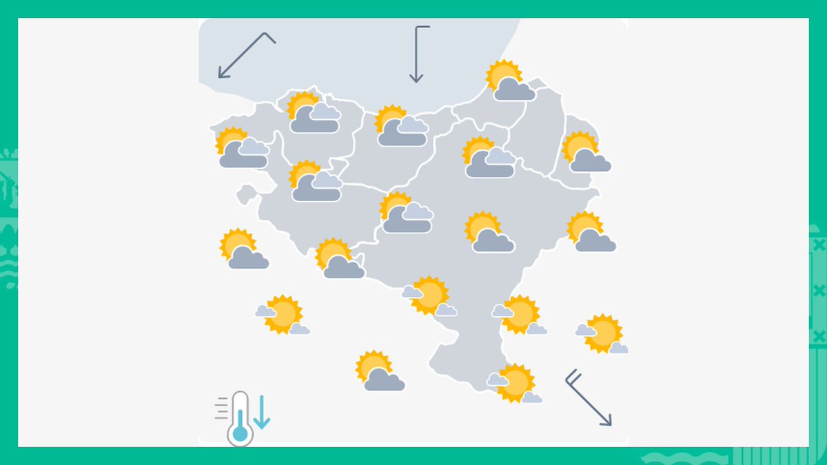 🌡#Tmax ✅ Gaur jaitsi dira, hala ere, bihar jaitsiera nabarmenagoa izango da, bereziki barnealdean. 📉Mañana el viento del nordeste provocará un descenso más notable de las temperaturas máximas, sobre todo en el interior donde apenas alcanzarán los 10 ºC . https://t.co/IMhr2KXt1d