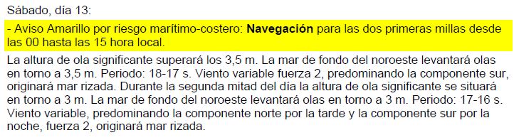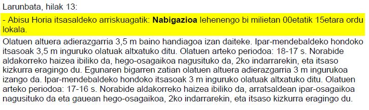 #AbisuHoria #olatua ? Amaitu da Abisu Horia olatuengatik nabigaziorako. ? Finalizado Aviso Amarillo por altura de ola para navegación.