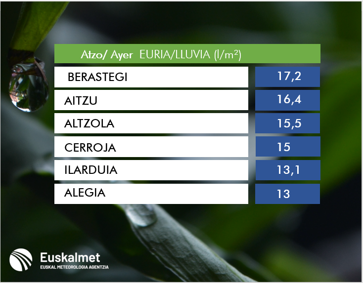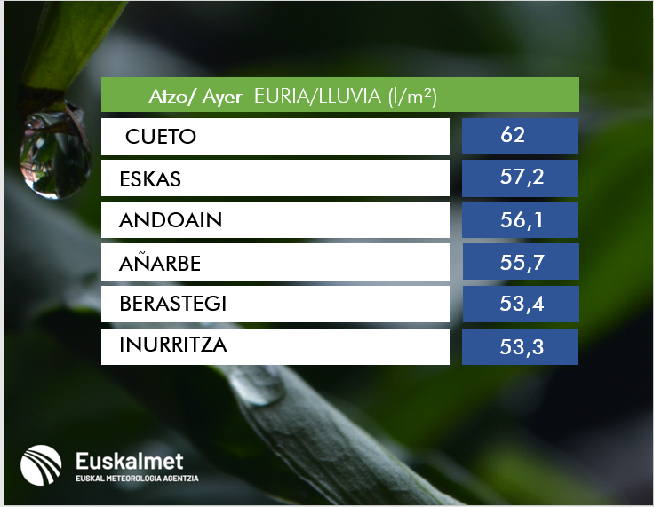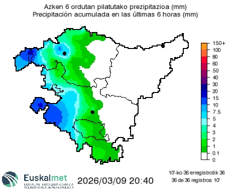 ✅Azken 6 ordutan pilatutako prezipitaziona (l/m²). ✅ Precipitación acumulada en las últimas 6 horas (l/m²). https://t.co/ZBeipCCaQi