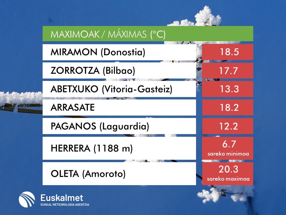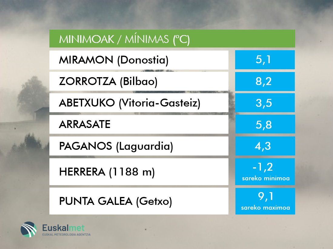 🌡#Tmin 📈Bart lainotuta egon denez, ez dira atzokoak bezain beste jaitsi. 📈Debido a la nubosidad, esta noche no han bajado tanto como ayer. https://t.co/PDwGF00Jrg