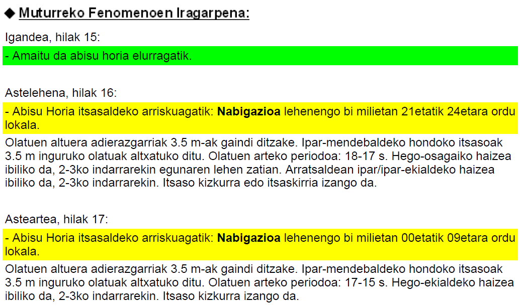 EguraldiaMiércoles ☁Cielos muy nubosos con lluvias débiles, primero en la vertiente cantábrica y por la tarde en la mediterránea también. ↗↘ Viento del suroeste por la mañana, del noroeste por la tarde. 🌡Sin cambios en las temperaturas.