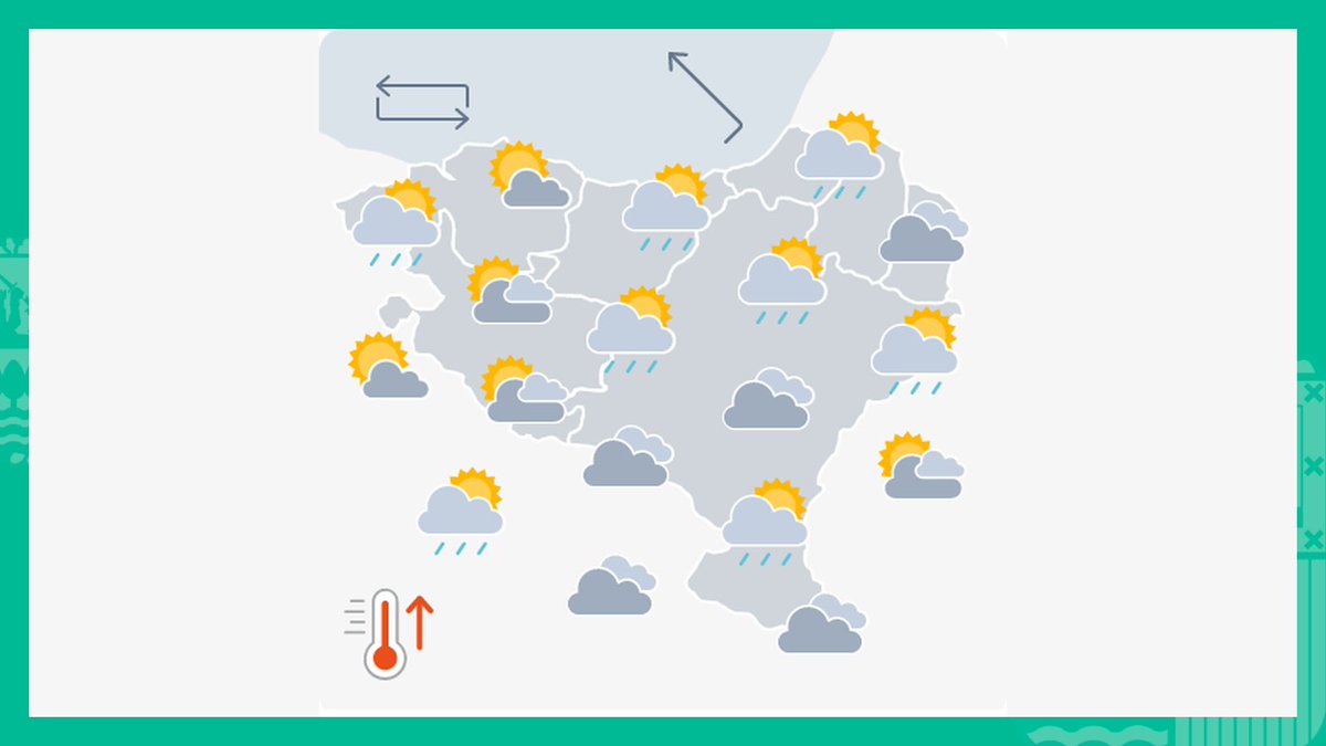 ⛅Arratsaldean hodeiak eta ostarteak. Hala ere, ezegonkortasun apur bat egongo da eta ez da baztertzen zaparrada bakanen bat mend inguruetan. ⛅Por la tarde nubes y claros, aunque quedará algo de inestabilidad y no se descarta algún chubasco puntual en zonas de montaña. https://t.co/KXr3ITjavS