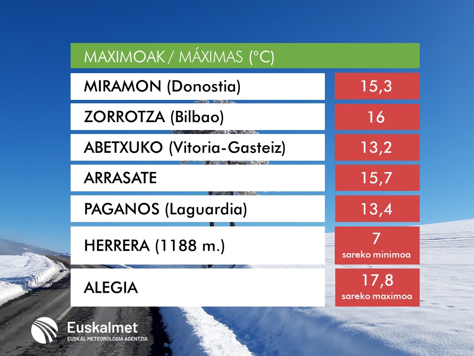 Temperaturas para hoy en Euskadi